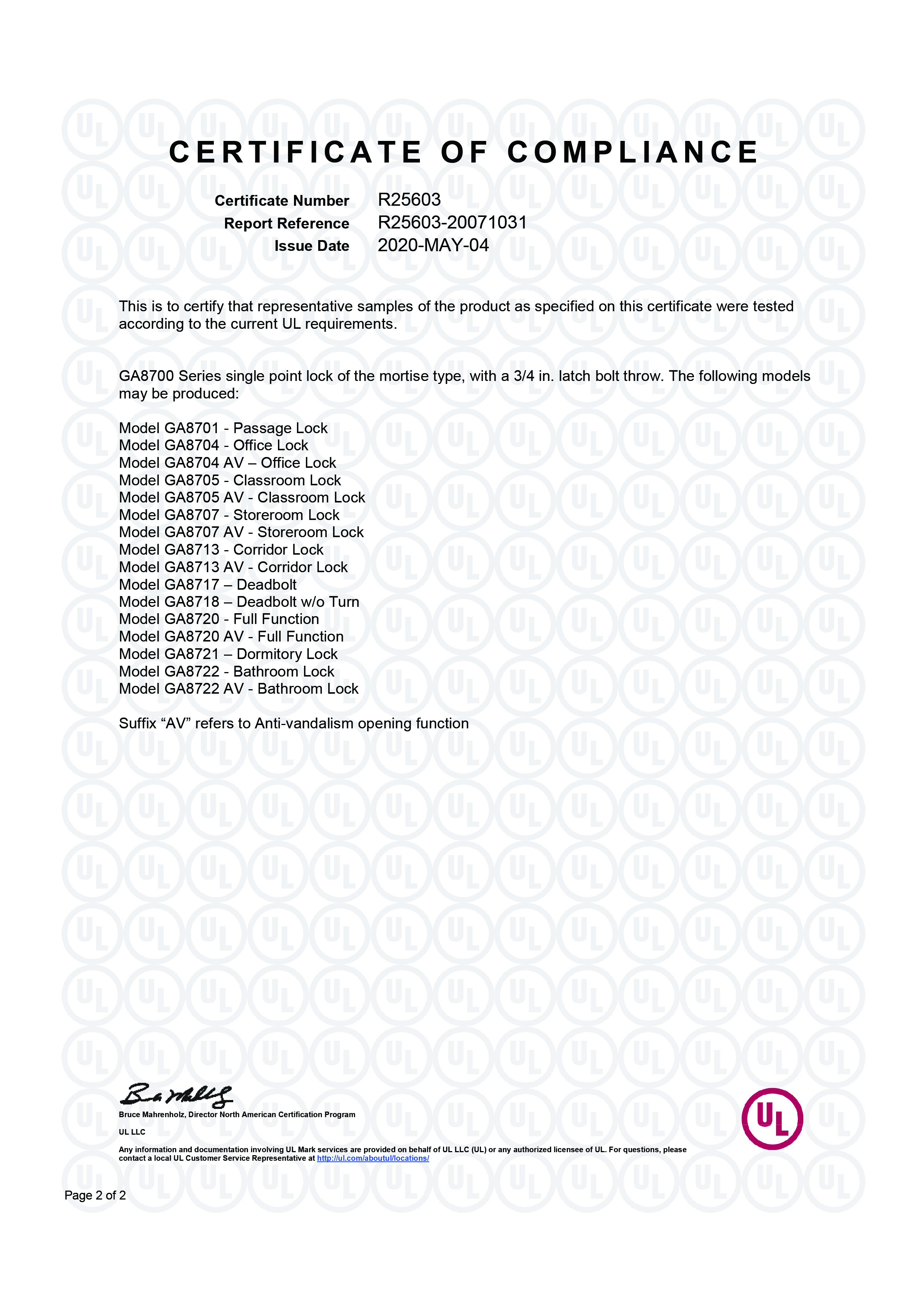 浙江堅(jiān)迪五金制造有限公司始建于 1995 年。自 2003 開始,公司致力于高標(biāo)準(zhǔn)商業(yè)鎖的研發(fā)工作,并于 2006 及 2007 年,8700 插芯鎖系列獲得美國國家標(biāo)準(zhǔn) ANSI A 156.13-2005 一級(jí)、ANSI A 156.2-2003 二級(jí)和美國 UL 10C3 小時(shí)防火測試認(rèn)證。自 1998 年以來,公司不斷提升產(chǎn)品和客戶服務(wù)品質(zhì),并獲得了 ISO 9001 的認(rèn)證。